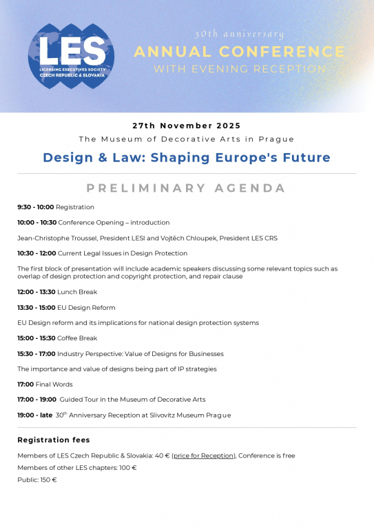 oddnes sa môžete registrovať na Výročnú konferenciu LES ČRS 2025, ktorá sa pri príležitosti 30. výročia založenia uskutoční 27. 11. 2025 v Umeleckopriemyselnom múzeu v Prahe.